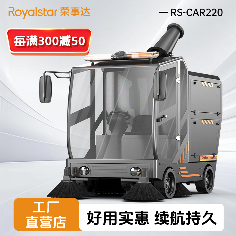 榮事達RS-CAR220 駕駛式掃地機1小時清潔15000平方米,實現了掃地+吸塵+霧炮三合一的功能。靈活霧炮設計,...