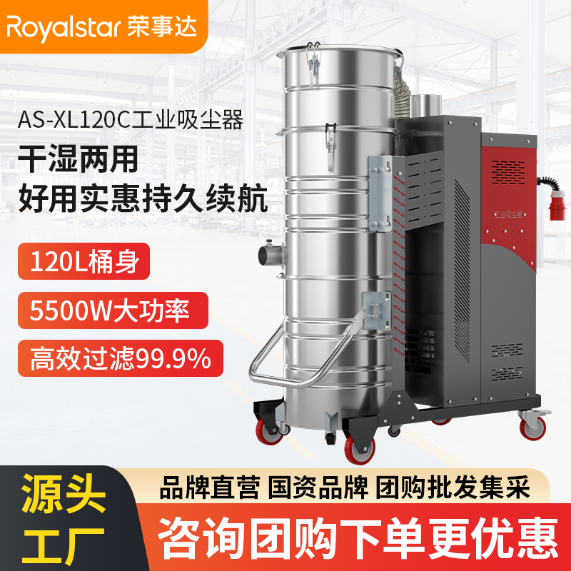 榮事達AS-XL120C工業吸塵器5500W脈沖款高效過濾、大功率吸塵、可聯系不停機工作。