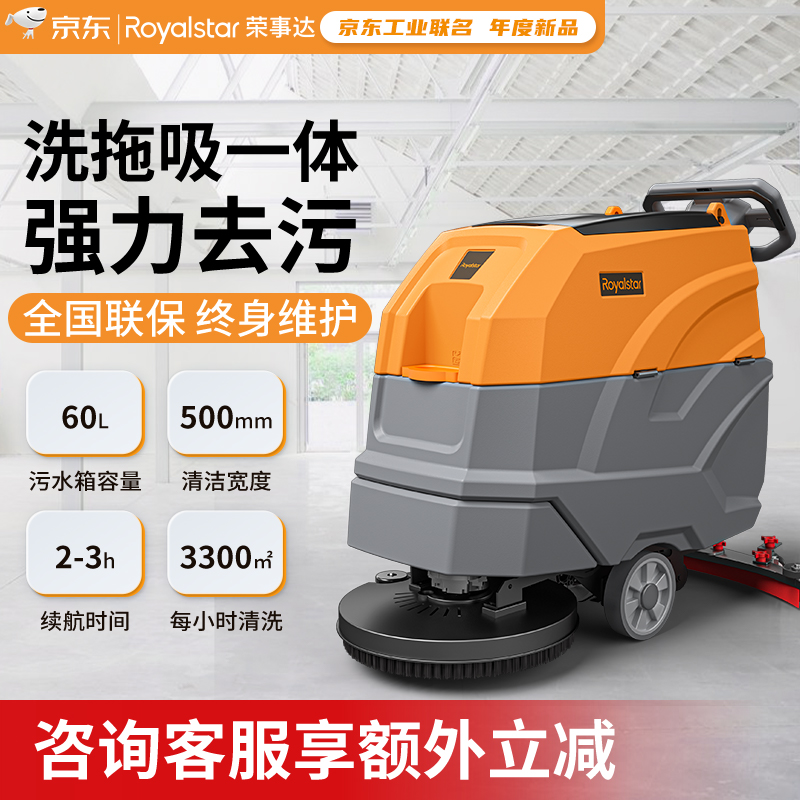 榮事達(dá)JD60手推式洗地機(jī),洗地+擦地+吸干三合一,使用它只需幾分鐘就能把地面徹底清潔,輕松搞定。